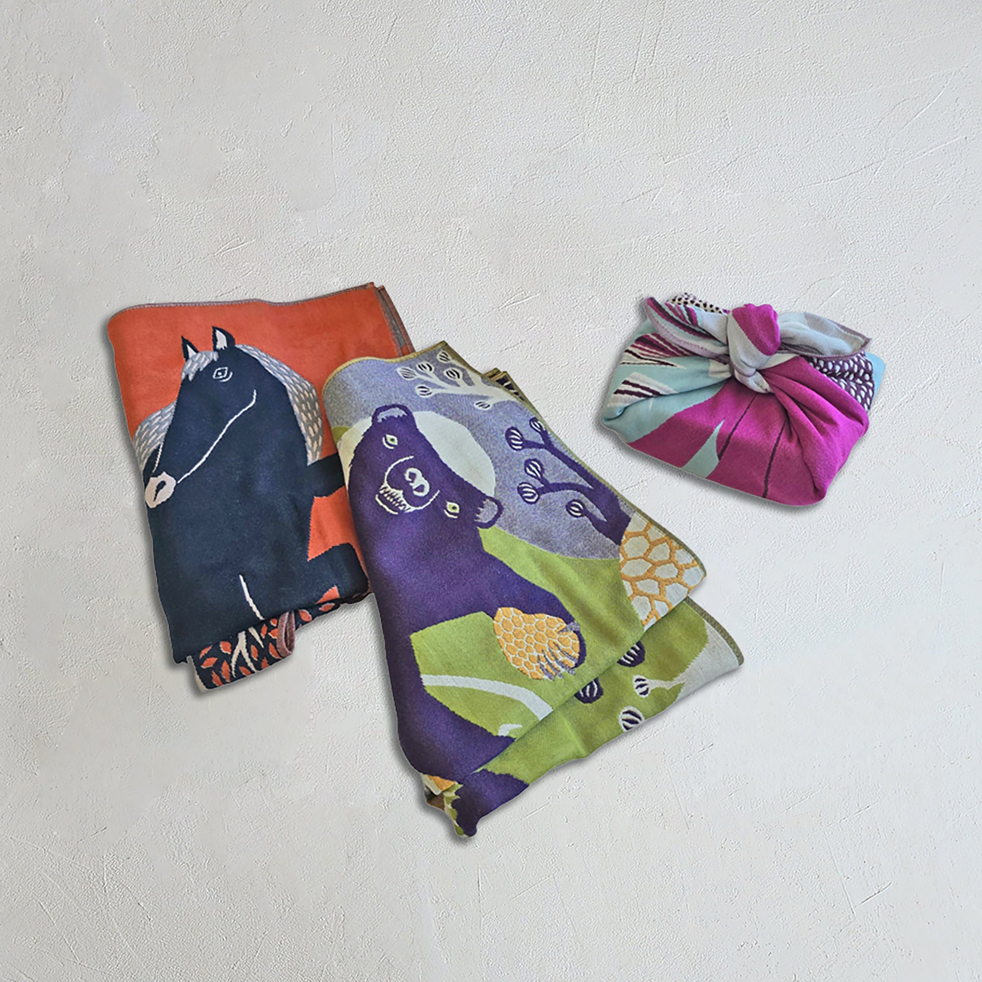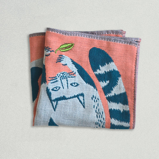 つい触りたくなる、モコモコしたどうぶつたちがポイントのハンカチ。ガーゼの裏側は同じモコモコとしたボリュームのあるパイルで、吸水性に優れていながらも、少し小さめのサイズで持ち歩きやすいです。