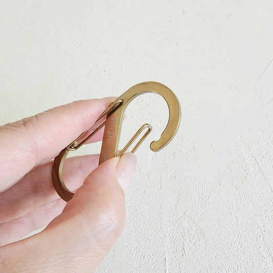 アンティーク調の真鍮色がお洒落、シンプルでつけやすい構造のカラビナです。