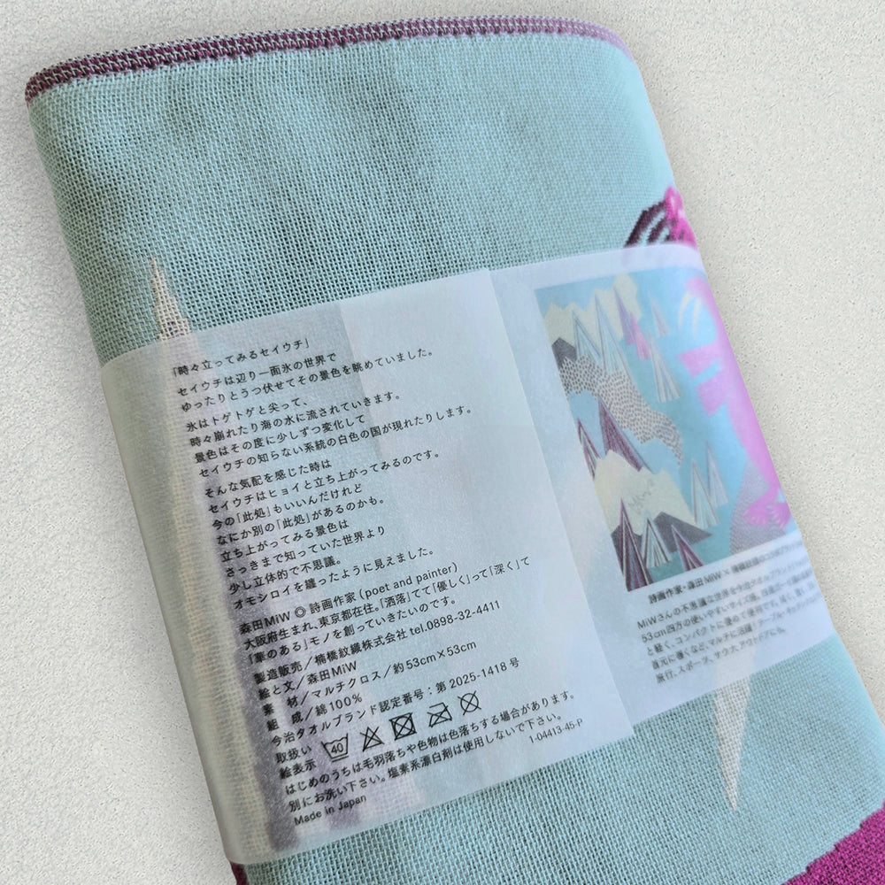 拭く、敷く、包む、チーフのように首元に巻く、大判のハンカチとしてなど、マルチに活躍します。帯の部分に物語が付いています。是非、お好きな色やモチーフ、物語からお気に入りを見つけて、大切な方や自分へのプレゼントとしてお使いください。