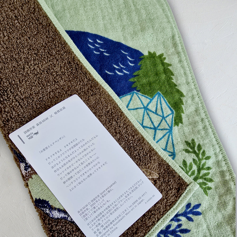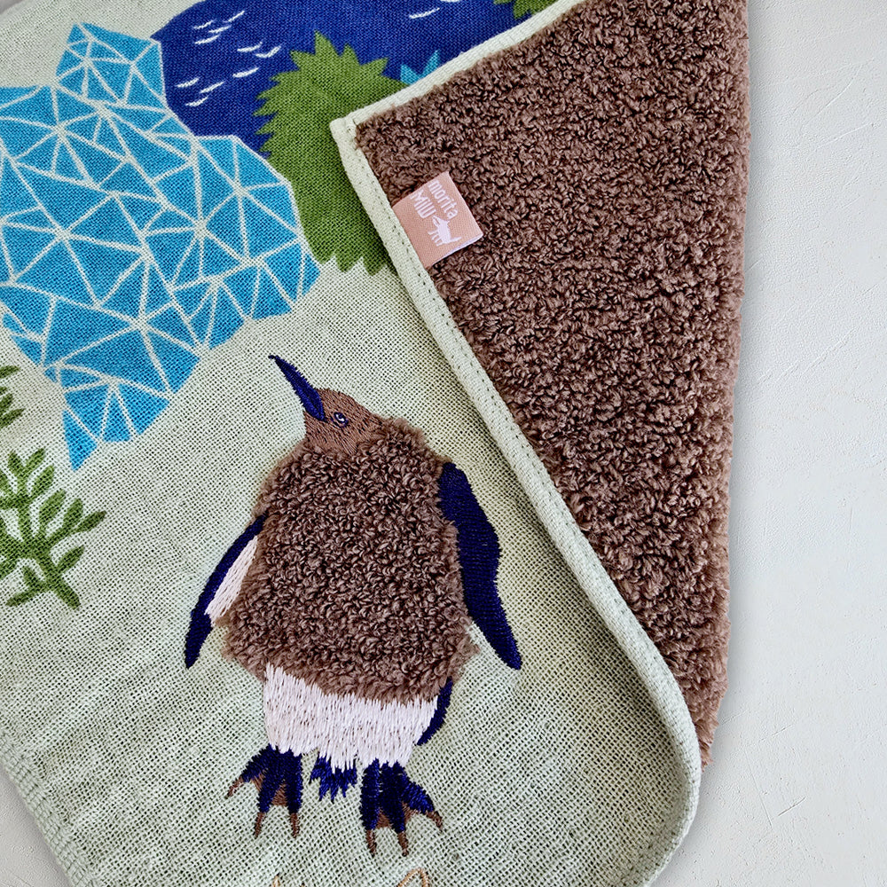 ガーゼの裏側は、どうぶつたちと同じモコモコとしたボリュームのあるパイルで、吸水性に優れていながらも、少し小さめのサイズで持ち歩きやすくなっています。