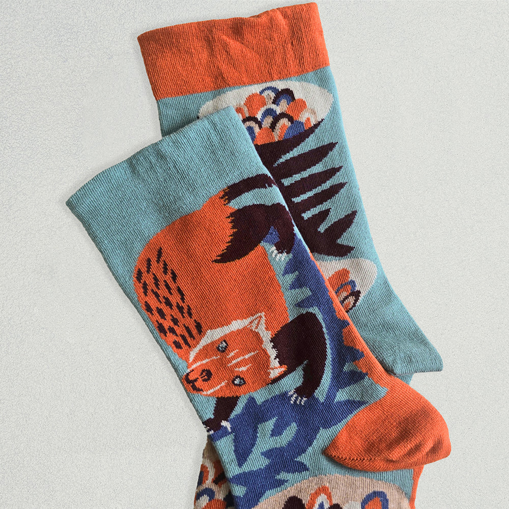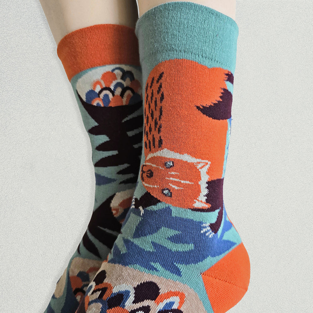 それぞれ左右の柄が違い、ちぐはぐなのがオシャレで楽しい靴下です。