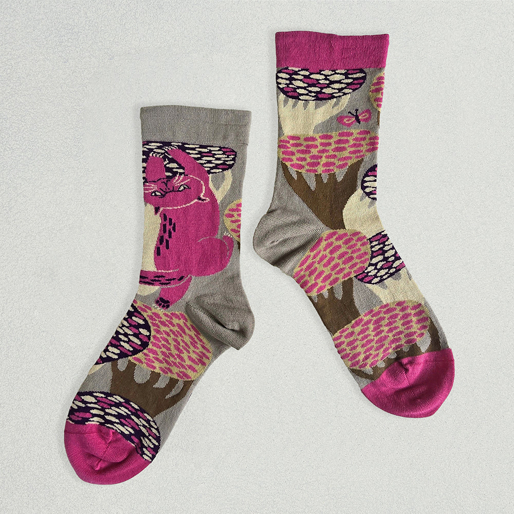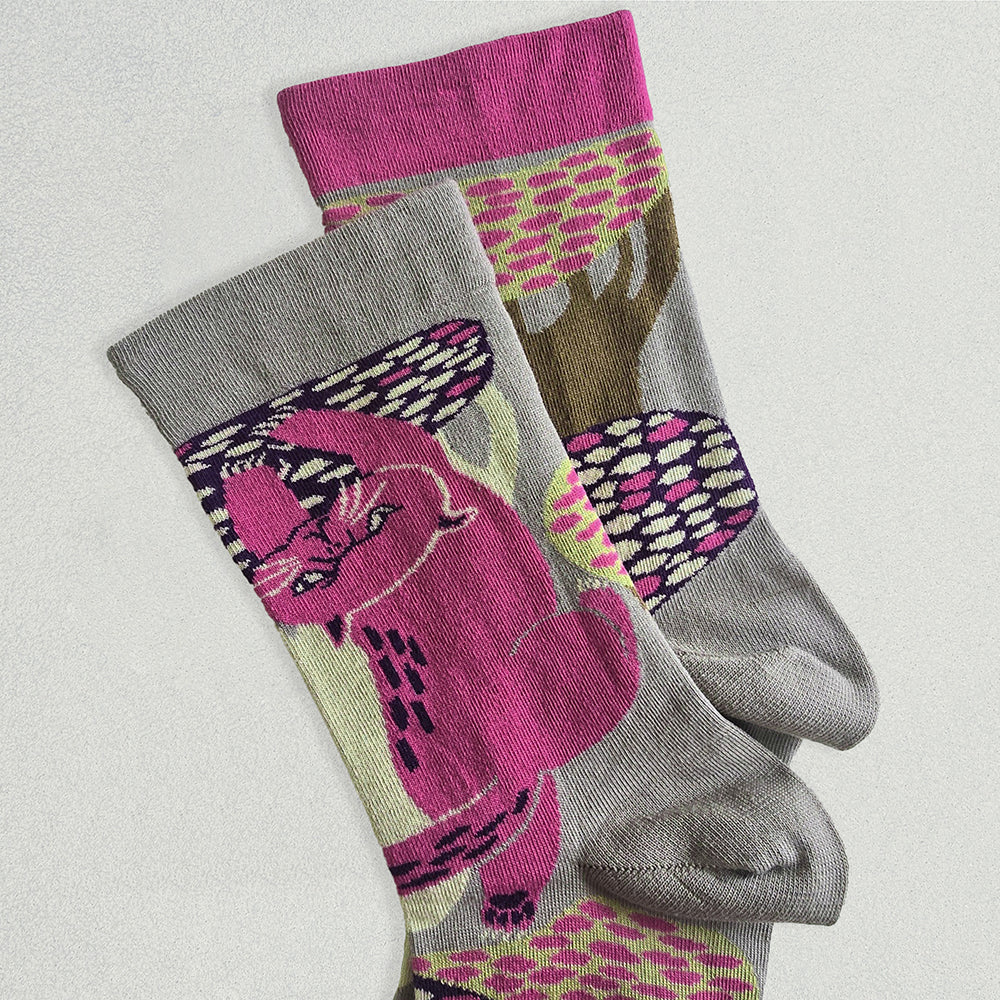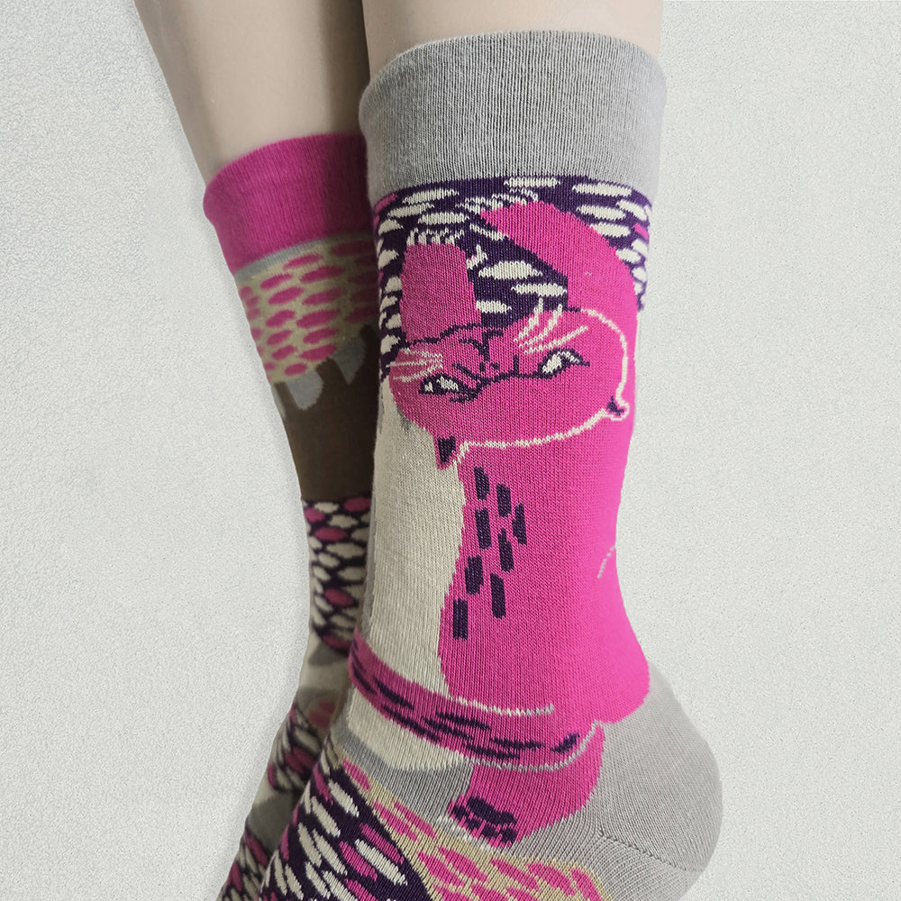 それぞれ左右の柄が違い、ちぐはぐなのがオシャレで楽しい靴下です。